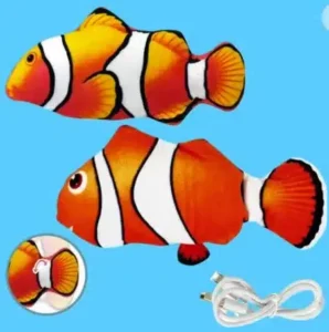 **Zappelfisch – Interaktives Katzenspielzeug** Der Zappelfisch ist ein realistisches, zappelndes Fischspielzeug für Katzen, das über einen Bewegungssensor aktiviert wird. Aus robustem, waschbarem Plüsch gefertigt, sorgt er für langen Spielspass. Der Fisch ist wiederaufladbar (USB) und verfügt über einen Reißverschluss, sodass er mit Katzenminze gefüllt werden kann, um die Katze zusätzlich zu begeistern. Perfekt zur Förderung von Aktivität und zur Vermeidung von Langeweile bei Katzen! **Highlights:** - Realistische Bewegungen durch Bewegungssensor - Wiederaufladbarer Akku (USB) - Waschbar bei 30°C - Befüllbar mit Katzenminze - Ideal gegen Langeweile und Stress bei Katzen Lieferumfang: